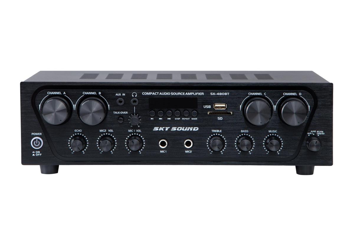 SKY SOUND SK-480 (4*80W) - многозонный усилитель мощности с четырьмя независимыми каналами, каждый из которых имеет отдельную регулировку громкости. Идеально подходит для организации звука в нескольких помещениях или создания гибкой аудиосистемы с регулировкой по зонам.